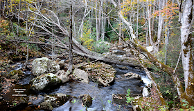 The most dramatic aspect of being in upper portions of South Fork Gorge on this afternoon was the interplay between changing light and autumn color, with a shaft of sunlight below illuminating colors behind the cliff line shown at 2:52 PM.